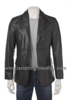 * Men�s black leather classic blazer jacket * Made from high-grade nappa leather * Featuring classic two button single breasted silhouette, two hip pockets with flaps and one breast pocket, four button cuff detail * Fully lined with two internal pockets one of which is zipped
